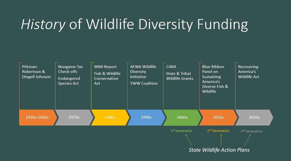 Charge: Collaborate to develop outreach tools, communications, and actions that will facilitate state agencies and our partners in supporting and in building support for the Recovering America's Wildlife Act. Identify actions that can help support goals of the Relevancy Roadmap.