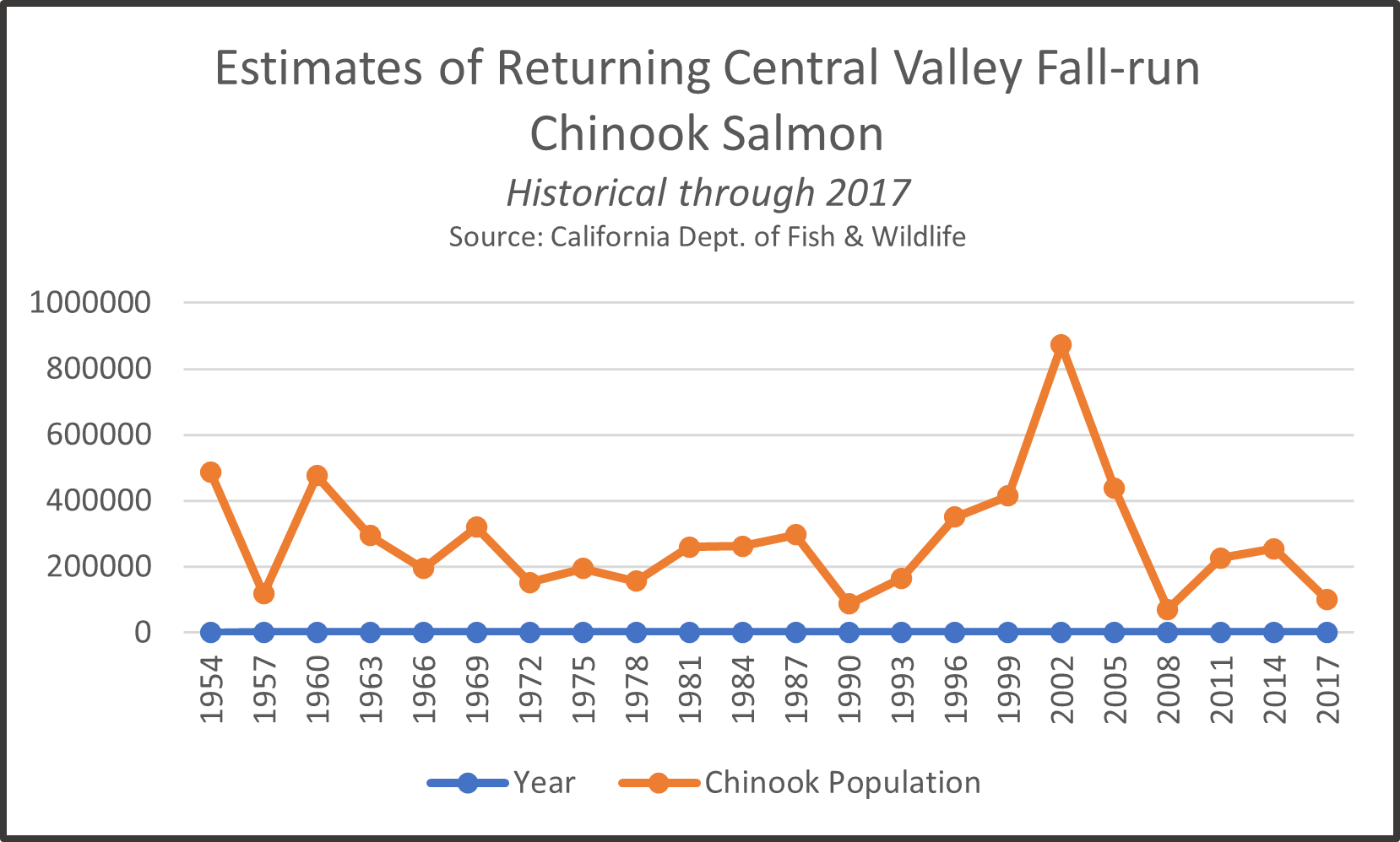 Population Graph of California Central Valley Chinook Salmon 1954-2017